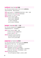 每個重點單字都搭配一個例句,這讓讀者可以從句義來學習單字的意思,我認為這種方法比死記單字的定義來得有效多了。重點單字下的例句幫學生把精力集中在字義和應用上,同時也提供單字不同面向的提示,像是區分易混淆字,如home和house,同時也列出某些名詞的不規則複數型態。