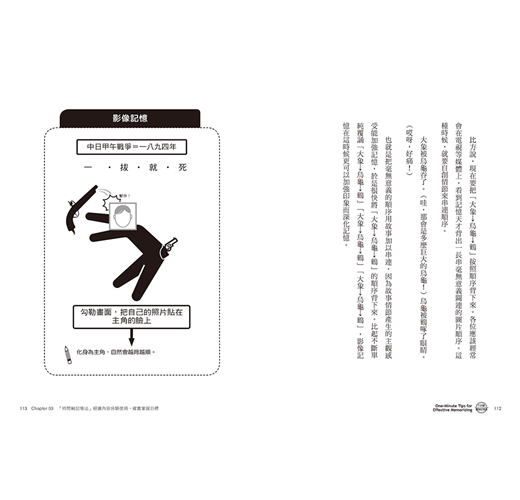 那麼,該怎麼做才可以把「一分鐘記憶法」內化成為自己的能力呢?只要學會本書接下來所要傳授的「四個招式」,任何人都能夠將它運用自如。