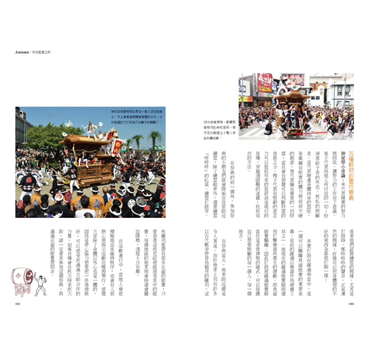 這次寶靈老師以當地人之姿帶路,規劃了觀光客最愛走訪的大阪和京都,並以四季景點分類,希望藉由她的專業告訴大家到哪些地方可以提升正面能量,並結合不同的冥想幫助內在建立信心,讓每次的京阪之行都可以帶著滿滿的幸福能量,回國後自然可以吸引到對的人、做對的事,感受截然不同的全新人生。另外,寶靈老師也在書中特別推薦個人的私房美味餐廳,希望透過好食的傳遞,帶給大家更多迎風向前的勇氣!
