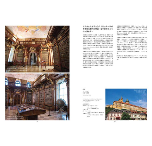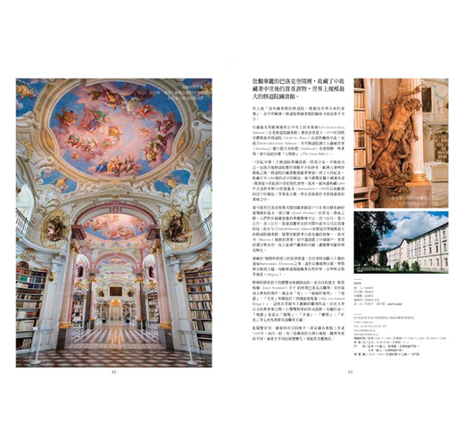從歐洲、南北美、亞洲、非洲、大洋洲,嚴選出全世界最具代表性的37間圖書館。如:源自法國國家圖書館且為近代意義上的第一所圖書館「法蘭西國立圖書館 黎塞留分館」、構思三十年才動工完成的「大英圖書館聖潘克拉斯本館」、電影《哈利波特》的「牛津大學伯德利圖書館」、完整保存莎士比亞著作手稿的「大英圖書館聖潘克拉斯總館」、被UNESCO評選為世界圖書館之都的「阿姆斯特丹公共圖書館中央圖書館」、德國人譽為第八奇蹟建築的「奧古斯特公爵圖書館」等……