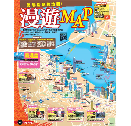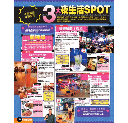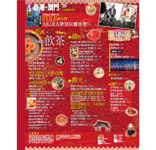 當然還有香港觀光重點的夜景特集。更介紹了在尖沙咀等熱門街區逛街的地圖指南。並包含豐富的澳門情報!