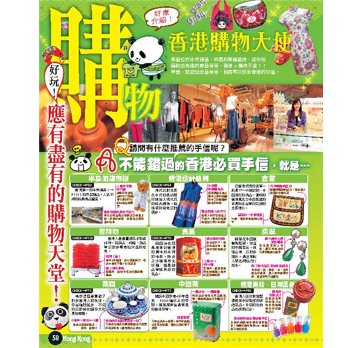 最適合買土產的飯店、香港設計雜貨店、餅乾巧克力等商品報導也是應有盡有。