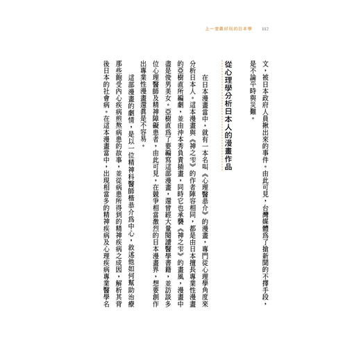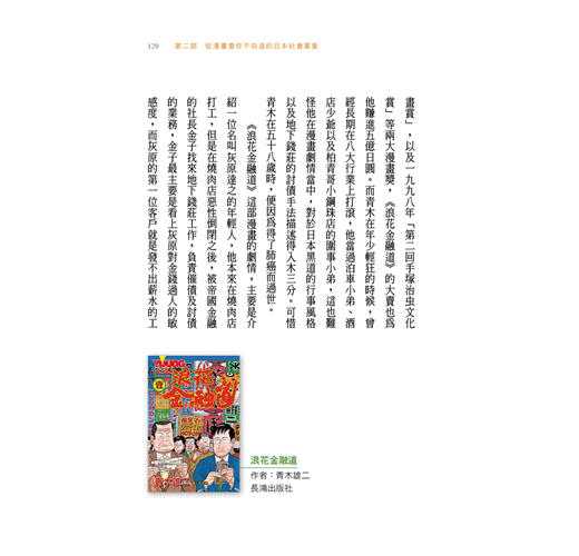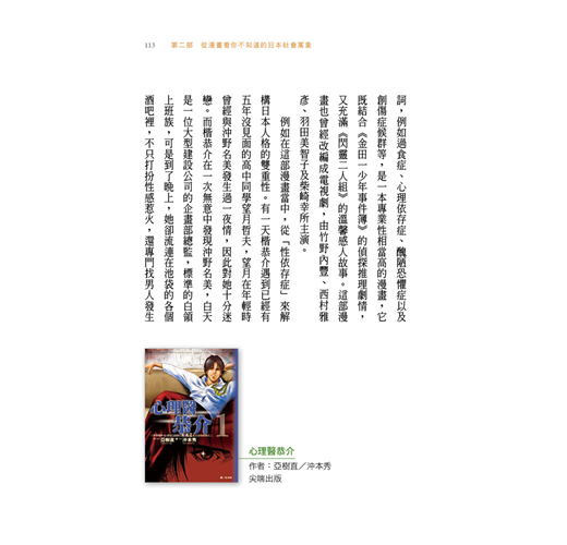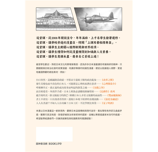 「本書讓讀者了解到,日本漫畫既可以是休閒娛樂,也可以是知識文本,更可以是認識當代日本的窗口。」