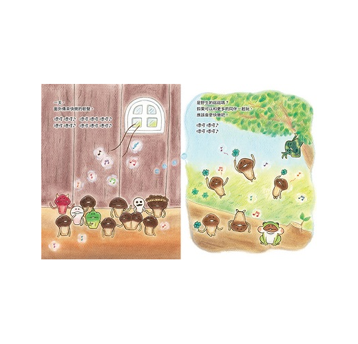 最受歡迎的可愛菇菇推出繪本囉!看各式各樣的菇菇們從原木上長出來,發出:「嗯哼!嗯哼!」的聲音,真是太可愛了!