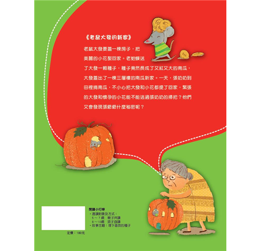 老鼠大發要蓋一棟房子,把美麗的小花娶回家。老蛤蟆送了大發一顆種子,種子竟然長成了又紅又大的南瓜,大發蓋出了一棟三層樓的南瓜新家。一天,張奶奶到田裡摘南瓜,不小心把大發和小花都提了回家,緊張的大發和懷孕的小花能不能逃過張奶奶的掃把?他們又會發現張爺爺什麼秘密呢?