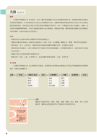 藉由範例旁的生字與表現的意義說明,可以更理解對話以及敘述的內容。除了課文中的單字,也補充延伸學習的單字,並以分類的方式呈現,歸納更有系統。