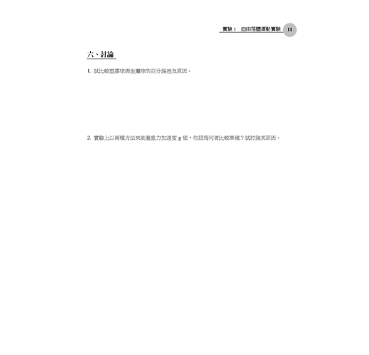 1. 試比較塑膠球與金屬球的百分誤差及原因。
