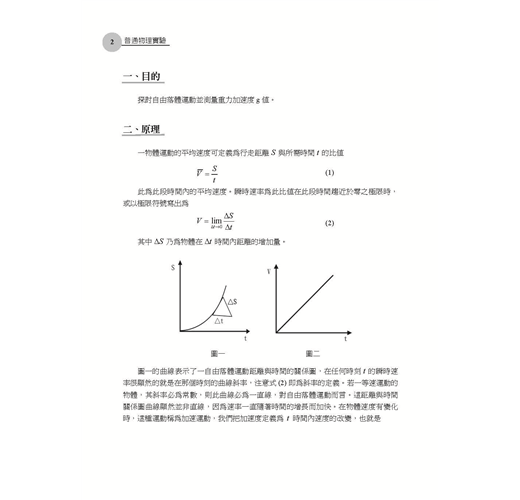 圖一的曲線表示了一自由落體運動距離與時間的關係圖,在任何時刻 的瞬時速率很顯然的就是在那個時刻的曲線斜率,注意式(2)即為斜率的定義。若一等速運動的物體,其斜率必為常數,則此曲線必為一直線,對自由落體運...