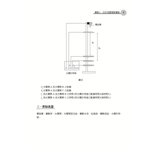 t1 為光電閘A至光電閘B之時間(即光電計時器之數據時間2減時間1)