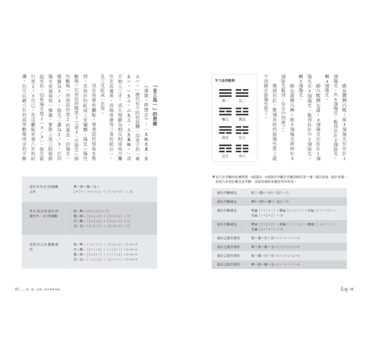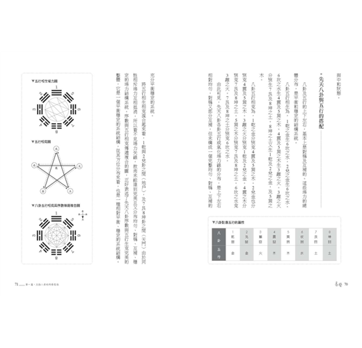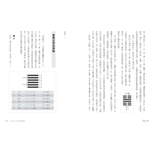 ❹ 八卦均由內、中、外3爻所組成。《周易》稱為天、地、人三才,蘊含著人與天地自然整體觀。