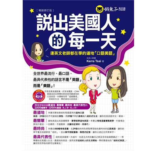 《說出美國人的每一天:連英文老師都在學的道地口語美語(暢銷修訂版)》摒棄傳統教科書及語言學習工具書的模式,將29個美國人的日常生活情境,化為活潑逗趣的漫畫,讓你輕鬆看漫畫,輕鬆學會美國人日常生活最常用的美式口語,學習零壓力、零負擔。