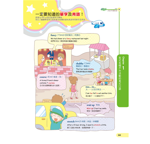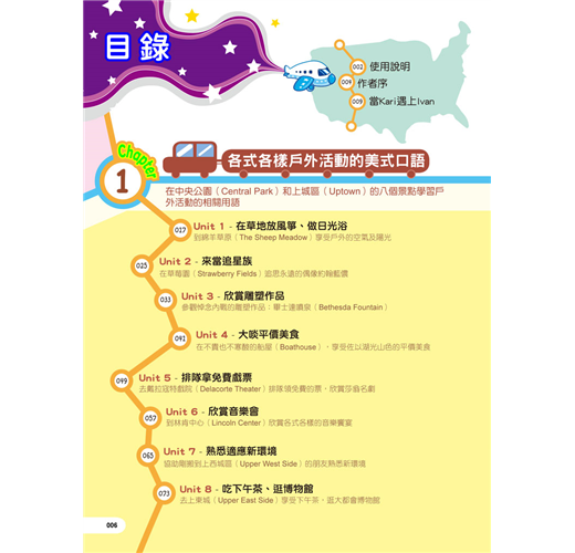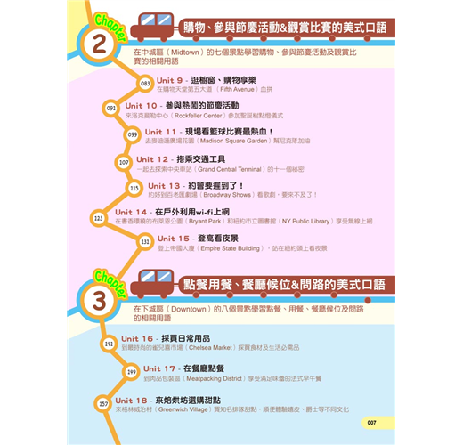嚴選29個紐約特色景點,帶出29個不同日常生活情境,從點餐、用餐、購物,乃至參與戶外活動或節日慶典,甚至現場看比賽,日常生活中所有大小情境,都完整收錄。讓你一年365天,天天脫口而出道地美式口語。