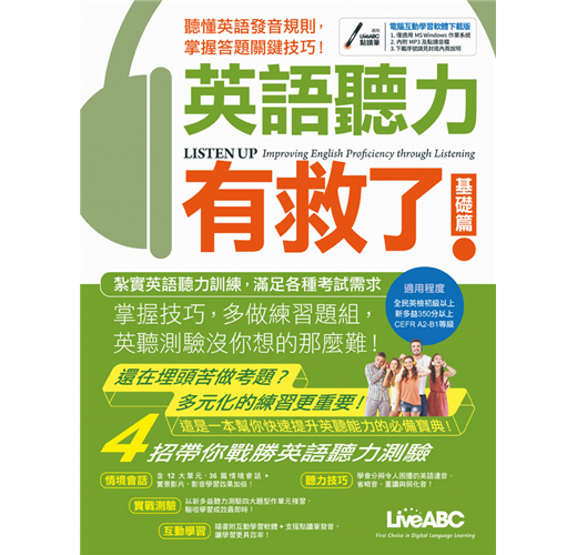 本書為針對欲加強英聽實力的基礎程度讀者所編寫,題材均選自於日常生活情境,內容豐富多元,有助於提升讀者學習興趣。每大單元均含3篇情境對話,並針對其內容設計練習題型,有效幫助讀者增進英語聽力理解能力。每篇情境對話亦搭配多組常用句型及對話練習,有助於讀者熟悉常見句構,並提升口說能力。除此之外,每大單元皆含聽力技巧說明,讓讀者藉由掌握發音規則,聽辨令人困擾的發音。單元的最後更仿照新多益聽力題型設計單元複習,即時驗收學習成效。相信本書必能成為你快速提升英語聽力能力的必備寶典!