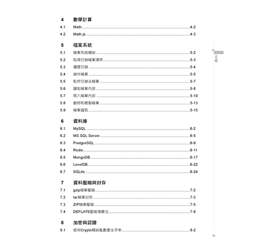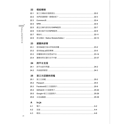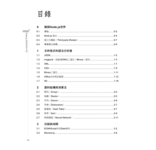本書除了包括了一些常用的NPM模組的介紹,以及各種解決方案的統整,還有一些Node.js重要觀念解說,可說是集各種技術之大全。讓開發者可以從中快速尋找需求的解決方案,以及從中找到改善開發過程的效率和品質的方法,大量減少開發人員去網路上搜尋和研究的時間。對一般的開發人員來說,這是一本極為有用的參考手冊;對於已經精熟Node.js的人來說,這是一本增廣見聞的捷徑。