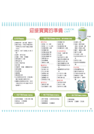 ◎除月計畫表格之外,還有待辦事項提醒(如:報戶口、打預防針)、本月需要用品清單或各月重要活動(如滿月剃頭儀式、4個月收涎儀式)、本月寶寶的狀況……等豐 富資訊。