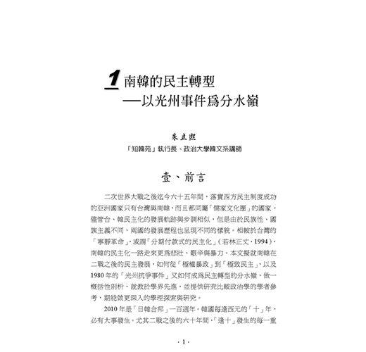 1.南韓的民主轉型─以光州事件為分水嶺/朱立熙