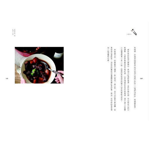 再怎麼辛苦,再怎麼忙,即使沒有心情,即使廚房沒有足夠的空間,都得好好的替自己作一餐飯,然後邀請幾個好朋友,一起渡過餐桌上寶貴的時光。是餐桌上的人們,和餐桌上的故事,讓食物本身更好吃。對Annie來說,日子裏好好努力生活的力量,就是這麼來的。