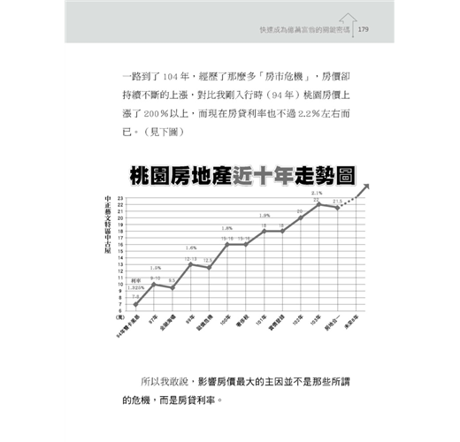 我一直強調,或許短期內,某些地區會因個別的因素,可能影響房價小幅下跌但整體來說,房價一定是持續上漲的,自臺灣光復以來,這個定律從來沒有~變過。