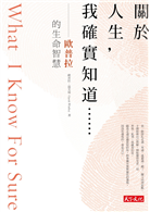「關於人生,我確實知道……」生命中充滿了未知,這些未知時常像暴風雨一樣將近淹沒我們。但當歐普拉用歲月追尋「確實已知」的真理,生命終究用最珍貴的智慧回報他。──劉安婷