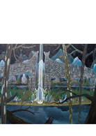 Husmann / Tschaeni 兩人的共同創作展演了兩種繪畫風格的結合與撞擊,抽象與具象,理性與瘋狂,兩個世界完美地互相包覆,從透明壓克力板內側望去,會是記憶裡燦亮童年場景的夢幻版本。Daniela Tieni 的作品裡有著詩性的構圖,彷彿從每個意味深長的句子轉化而來,以質樸的語言訴說,一張圖即是一則寓言。David Jien 有著魔幻引力的作品就像是史詩般神秘故事的預告片段,他細細描繪齊整繁複的異質場景,把現代動漫的養分與古老東方繪圖風格的暗示,結合在一起,就像是盜取了寶藏的盜賊,把秘密都留在畫中。