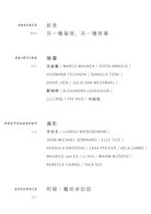 梁嘉賢善於觀察城市生活的面貌,藉著自述性質強烈的「女孩」形象,用充滿趣味的超現實構圖來與搭配創作的打油詩唱和。傳統的國畫設色淡泊而優雅,讓單薄枯燥的日常也能有自娛自樂的奇幻片刻。Marco Wagner 的作品裡帶著深刻的,有關傷痕的暗示,那種成長過程中一直貼附著的,衣下的傷疤,與鄉愁混合在一起,形成複雜而難以言說的感情,卻也展現出了自我療癒的可能性。居住在鄉村的Sofia Arnold 以「原始土地上的新移民」的角度,表現人們與鄉野之間的取捨、衝突、妥協,特別的是那種散漫歡快的筆調,將尋常的鄉間化為快樂神秘的la-la-land。