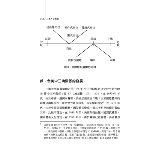 本書首先從國際關係理論著手,考量美中對峙國際體系下,台灣的外交走向該如何,特別是台美、台日,以及台灣與中國的關係。