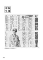83歲志工,本身也是一位癌症病患,兩度復發轉移,依然熱愛生命,熱心公益,八八風災期間,十天內募捐一台救難車前往災區,是志工界的名人。曾上節目接受採訪,如「GOODTV--真情部落格」、「GOODTV--劉三講古-台灣生命力」等,分享成長過程與抗癌歷程大獲觀眾好評,也曾接受平面媒體的報導,如自由時報等。