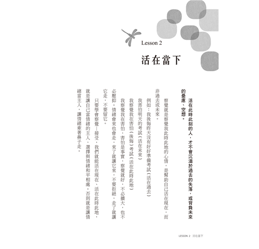 過去的我已離我而去,未來的我還不屬於我,只有此時此地、當下的我才是我的,可是我們常常沒有使自己活在當下。