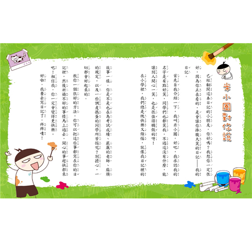 米小圈把小學生活裡的趣事和煩惱的心事,統統寫在日記裡了。看完他的日記,或許你會發現生活周遭裡也有個米小圈喔!