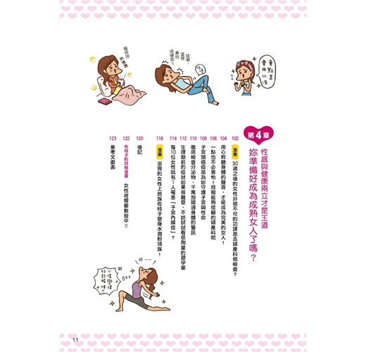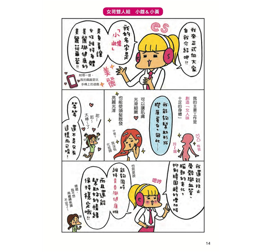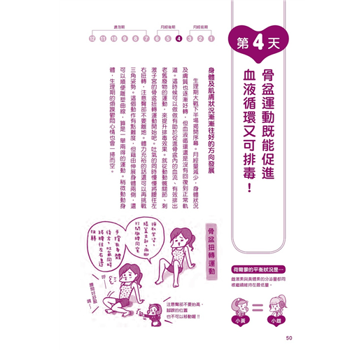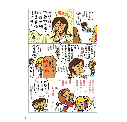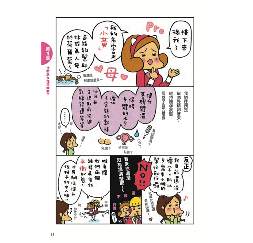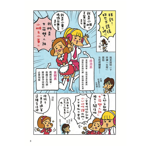 本書利用小雌、小黃兩個角色,把月經週期可能的變化、困擾以及解決方案,用圖解及文字簡單搞定,這是一本讓妳閃閃動人的好書。