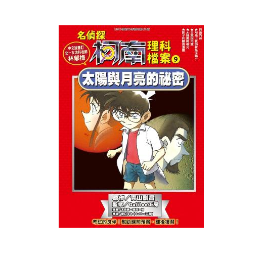 本集《柯南理科檔案 9 太陽與月亮的祕密》中除了有精采的漫畫,在漫畫部分之後還有太陽與月亮的介紹專欄,看完本書後就能自然而然了解太陽與月亮對地球的影響以及重要性,另外配合閱讀本系列《柯南理科檔案 4 星星與星座的祕密》便能讓自己懂得更多的天文知識喔!
