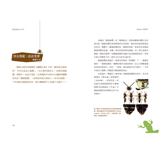 現在知道了吧?正常的昆蟲看到雌雄嵌體昆蟲時,不會像我們看到人妖一樣驚豔,而是會怒斥「嚇死人啦!」但是,邪惡的人類偏偏要以科學的名義製造出這種怪物。比如他們利用某些突變誘導因子,例如控制溫度等,就可以誘發果蠅變成雌雄嵌體。很多蝶商就用類似的方法製造出「陰陽蝶」,然後做成標本出售。