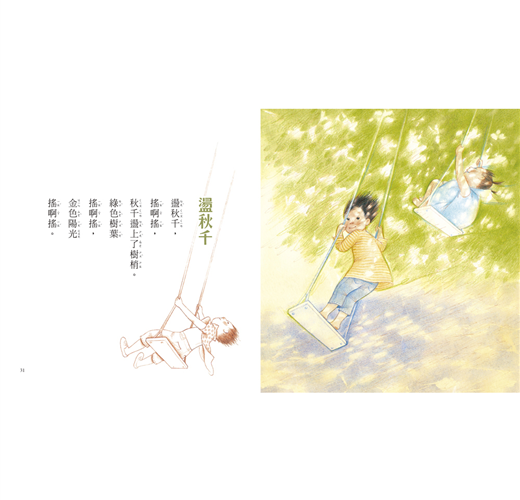 書中的圖畫細膩生動,孩子的髮絲在陽光下飛揚,玩耍後的每張小臉紅通通的,讓人忍不住想捏一把。