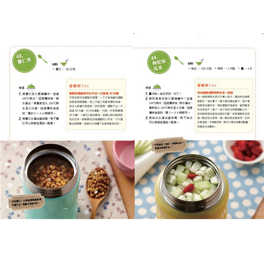 .全榖根莖類:白米、白麵條、冬粉、米粉都是容易煮熟的食物,用燜燒罐燜煮的時間不需要太長,其他的全穀類與紅豆、綠豆等質地堅硬緻密的食材,就必須預熱靜置的時間拉長,浸泡1~2小時後,再與其他食材一起料理,才能用燜燒罐燜爛。地瓜、芋頭、馬鈴薯等根莖類只要切小塊或薄片,預熱多重複幾次再燜煮即可。