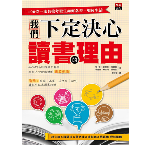 我始終堅信「學習,要站在巨人的肩膀上」,《我們下定決心讀書的理由》一書即將付梓,有幸先睹為快,滿心歡喜。本書集結了一百位考取名校大學生的經驗訪談,從讀書動機談起、如何集中注意力,談到獨門念書方法,是心路歷程的現身說法,也是私房讀書祕笈的大公開,精彩極了!雖然是韓國的學習經驗,但書中許多升學壓力、父母期望、補習現象、生涯選擇等等情景,亦與國內升學環境多所吻合,可借鏡之處比比皆是。以筆者曾經十餘年間經營高中教育的所見所聞,這本書可說是「學習,要站在巨人的肩膀上」的典範之作。