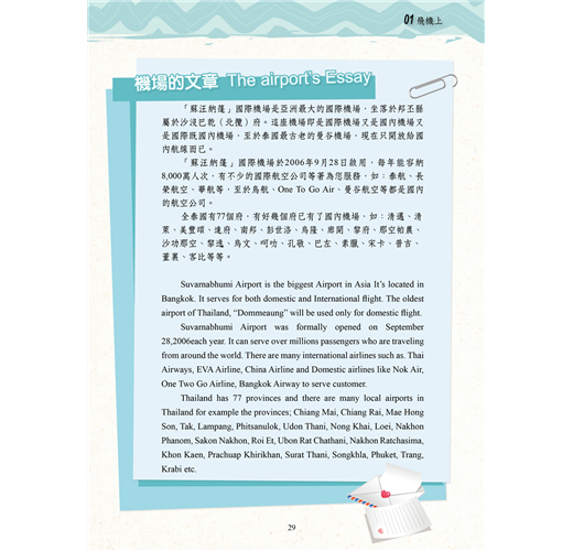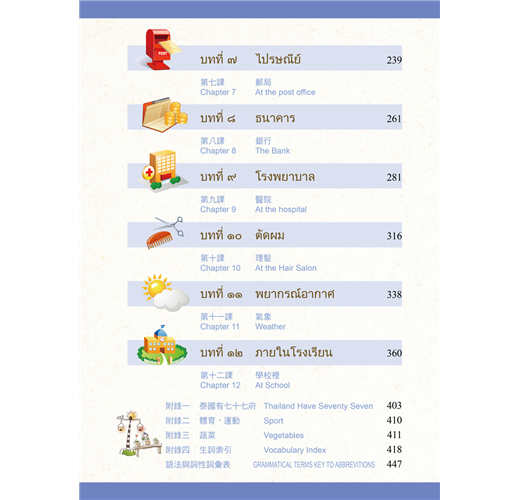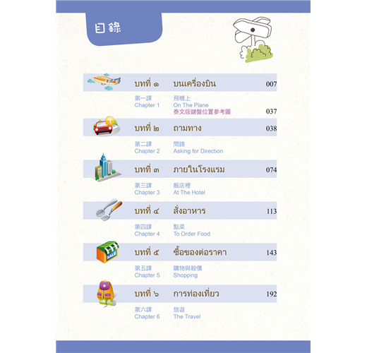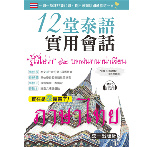 將日常生活及出國旅遊息息相關的場景分門別類,由出境搭飛機開始一步一步輕鬆完成十二大類別生活對話,只要十二週即可在泰國自由的生活、洽商 、旅遊喔!