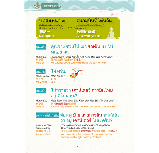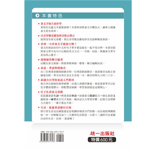 泰文的會話如同中文的句子單字都是接在一起不易分辨,本書首創將泰文單字及句子以類似英文方式一一空格。如此,辨識泰文單字更加得心應手。