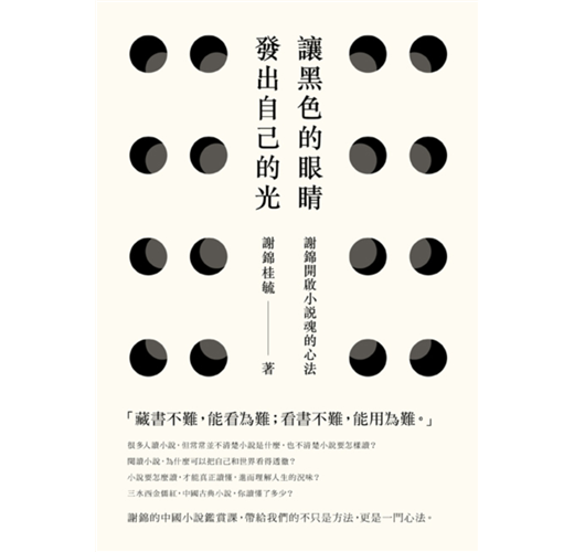 本書表層講的是讀小說的門徑和方法—開啟靈魂之窗,意旨則是搭起通向認識自己、認識世界的橋梁,建構自己的意義世界;兩者一表一裡,所以書名叫做《讓黑色的眼睛發出自己的光—謝錦開啟小說魂的心法》。