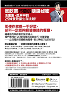 《餐飲業邪惡的賺錢祕密:活生生、血淋淋的25條餐飲業生存法則!》透過餐飲業培訓達人輔導過的真實案例,讓你在餐飲紅海中,殺出重圍,馬上成為鄉民口耳相傳的「必吃名店」,創造業績與形象。