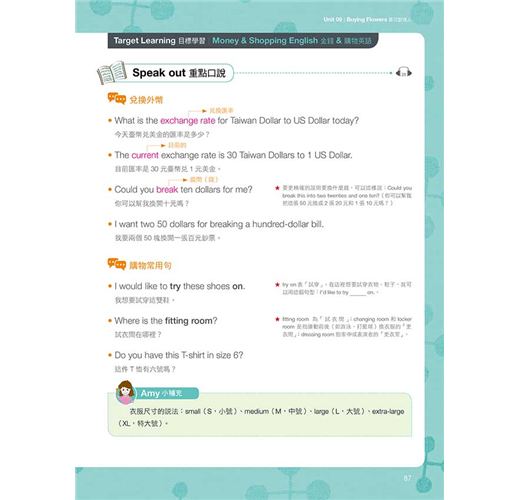 Speak out 重點口說:延伸主題發展相關實用句型,同個情境有多種說法可以運用。