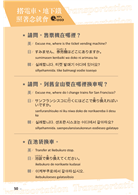 中文搭配英、日、韓文,完整收錄四國語言食、衣、住、行及玩樂等情境好用句。中、英、日、韓快速切換,絕對能達到溝通無阻礙。