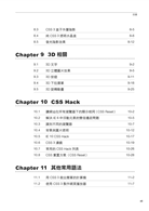 本書精選400多段的CSS程式碼,從基礎的文字、圖片、邊框、按鈕、連結等網頁元素設計,到轉場動畫、頁面布局、響應式設計等各種進階功能,應有盡有,讓你能夠輕鬆做出媲美知名網站的網頁效果,如:圖片牆、幻燈片、影像地圖、對聯廣告、紙張邊角效果等。此外,更提出多種CSS Hack方案,解決因瀏覽器不同所帶來的效果不一致、效果出錯等相容性問題,讓你的網頁不論在哪種瀏覽器上,都能完美呈現!