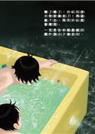 嗯,太陽下山了,好像該來洗澡囉!咦,為什麼浴缸變成圓球狀啊?等等,媽媽竟然邊洗澡邊煮飯,這是怎麼一回事呢?啊,爸爸也是,竟然在搭電車回家的路上就洗好澡了!