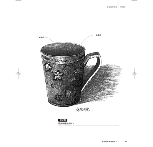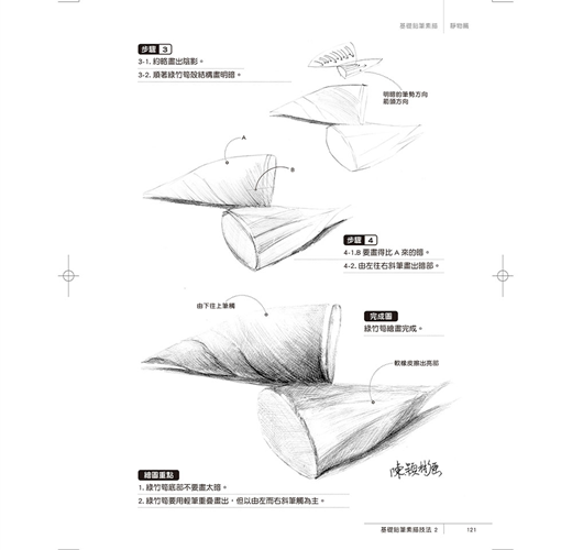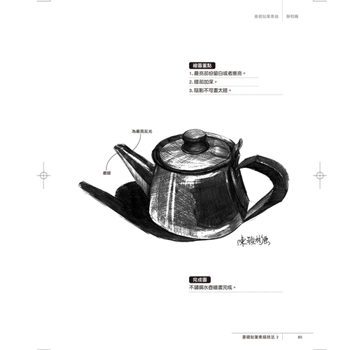 因此,筆者認為以現有的基礎鉛筆素描1再延伸寫一本基礎鉛筆素描2,而在這本鉛筆素描2之中,題材多樣化,內容更為充實,其中分為幾大類,例如:木質類、玻璃類、瓷器類等……。
