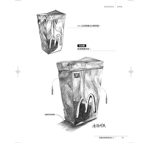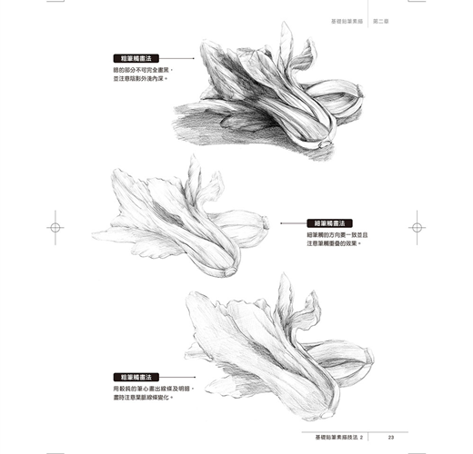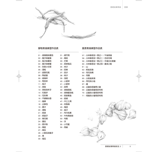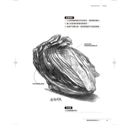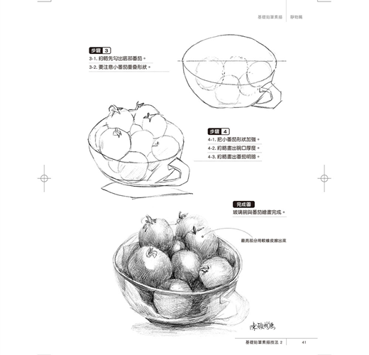 在58-71中,更是添加了上一本基礎鉛筆素描1所沒有的風景與動物系列,這些系列同時也是下一本油畫技法中的素描底稿,將來讀者可以將基礎素描2中58-71與油畫技法互相搭配,從中可以得到更好的學習效果。