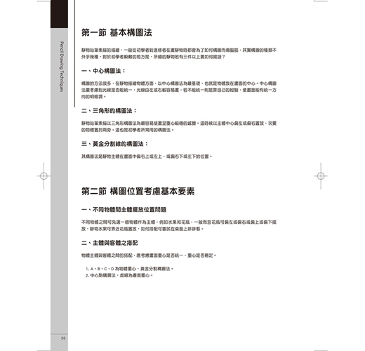 本書除了前面所描述的各類材質介紹之外,對於如何構圖及繪畫的過程在旁都有詳細的說明,都是本書的特色。