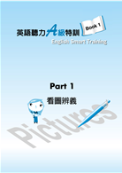 套書內含二個階段的學習難度:Book 1 適用想準備「全民英檢初級測驗」或首次挑戰「高中英語聽力測驗」的讀者。這本的題型與單字難度是根據英檢初級的聽力測驗所量身打造,所以有一點明顯與「英聽測驗」不同之處在於選項是三選一,而非四選一。但這些許差異,並不影響讀者在這個部份的聽力技巧訓練,因此也十分建議想準備英聽測驗的學生先利用本書為基礎聽力技巧奠基,當作一本能讓你同時準備兩種測驗的最佳自學指南。
