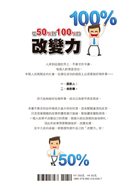 本書不要求你從中發現大澈大悟的哲理,或者醍醐灌頂的反思,只是借著精緻的故事對讀者進行啟迪,幫助讀者擺脫困境,一個人如果不改變自己的思維,那麼他只能在困頓的漩渦裡掙扎,因此你如果想要戰勝挫折、改變命運,從平凡走向卓越。那麼趕快提升自己的「改變力」吧!