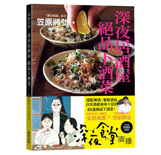 作者笠原将弘是漫画《深夜食堂》的忠實讀者,在本書中實現了和漫畫家安倍夜郎的風趣對談。漫畫不為人知的誕生祕話、兩人青春時代對於新宿的共同回憶、居酒屋的成人話題……等,收錄了多達16頁的對談,讓這本食譜更增添了趣味性。書中的80道食譜,都是作者將他10年的主廚經驗加以去蕪存菁、精心編寫而成的,讓讀者可以將隨手可得的食材變化組合,烹調出一道道美味絕倫的下酒菜。