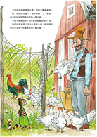 「等一下。」我從媽媽手裡搶下書,快速地往前翻頁,指著一隻飛在空中的母雞說:「雞不會飛。」
